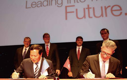 • 2010-04-08 福田汽车总经理王金玉,武汉方彦虚拟现实科技有限公司集团副总裁曹思德签署联合开发欧六排放及清洁能源载重汽车合作协议